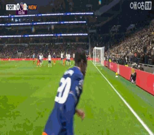 第45+5分钟,打破僵局,佳夫门前补射得分,纽卡1-0