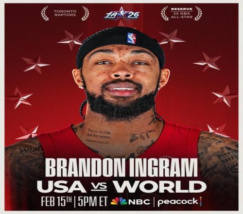 北京时间2月11日,NBA官方宣布,总裁亚当·萧华指定猛龙前锋布兰登·英格拉姆入选全明星,他顶替的是因为膝盖伤势缺席全明星的勇士球星斯蒂芬·库里。英格拉姆将加入的是詹姆斯、杜兰特、莱昂纳德所在的星条队。