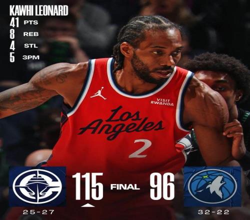 伦纳德41+8+4断 快船轻取森林狼