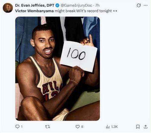 美国媒体认为文班亚马就是当代的张伯伦,而且觉得只要文班亚马在这场比赛能打满全场甚至可以完成张伯伦那单场100分大关的盖世纪录。