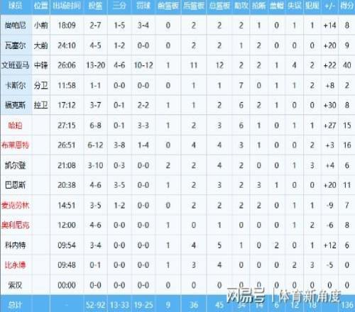 从文班亚马如此势不可挡的发挥不难看出,当湖人队缺少东契奇、里夫斯和詹姆斯这几位关键球员时,在马刺队面前几乎毫无抵抗之力,最终以108 - 136的大比分惨败。