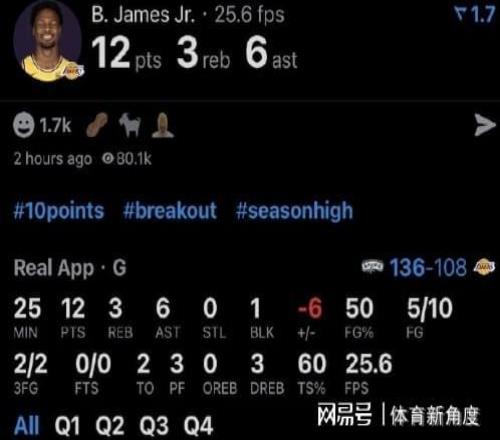 下面来看看双方的具体数据情况。马刺队这边,布朗尼的表现可圈可点。他作为替补出战约2投篮10次命中5次,以50%的命中率贡献了12分、3个篮板、6次助攻以及1次盖帽的全面数据。值得一提的是,他单场得分12分创造了本赛季新高(此前为9分),助攻数6次也追平了生涯纪录。更令人意想不到的是,这位身高仅1米88的小后卫,竟然成功大帽身高2米13的中锋,场面十分震撼。比赛中,布朗尼还射奥利尼克,尽显自信与实力。通过这场比赛足以证明,只要给予布朗尼足够的上场机会,他完全有能力承担起球队轮换的重任,并非只能依靠关系才能在NBA立足。另外,“太子爷”布朗尼今年以来的三分球表现也相当出色,合计8投6中,命中率高达75%,在湖人队内位居榜首。