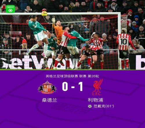 北京时间2月12日4:15,英超第26轮继续进行,利物浦客场挑战桑德兰,本场主裁判为克里斯-卡瓦纳。上半场,维尔茨低射中柱。下半场,萨拉赫角球助攻范戴克破门,远藤航伤退。最终,利物浦1-0小胜桑德兰。
