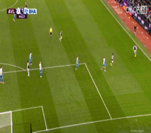 第15分钟,沃特金斯抢点头球攻门,皮球偏出球门