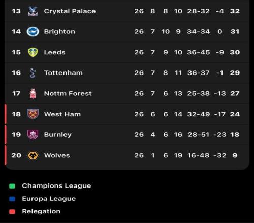 本赛季,英超的保级形势一度非常明朗。狼队、伯恩利和西汉姆联三支球队长期排名联赛垫底,他们被视为最热门的三支降级球队。但在近期,西汉姆联突然爆发,他们在近5轮比赛中狂揽10个积分,如今以24分排名联赛第18位,仅落后第17名的诺丁汉森林3分,而排名第16的热刺则只领先降级区5分。一时间,英超的保级形势骤变,由之前的3队铁定降级变成了5队混战。在英超,保级成功意味着超过1.7亿英镑的价值。在这场巨额财务的生死战中,俱乐部老板们显得越来越没有耐心。