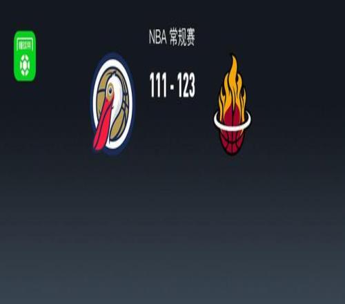 第四节鹈鹕萨迪克-贝拿下8分,热火阿德巴约拿下6分,最终鹈鹕111-123不敌热火