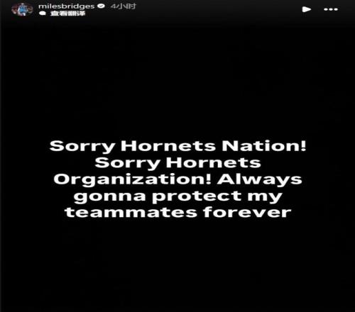 布里奇斯则发布道歉声明,向黄蜂国度道歉,坦言自己只是想保护队友。