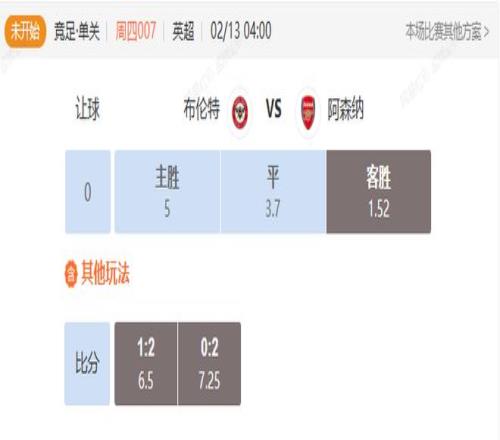 竞足 周四007 英超布伦特VS阿森纳