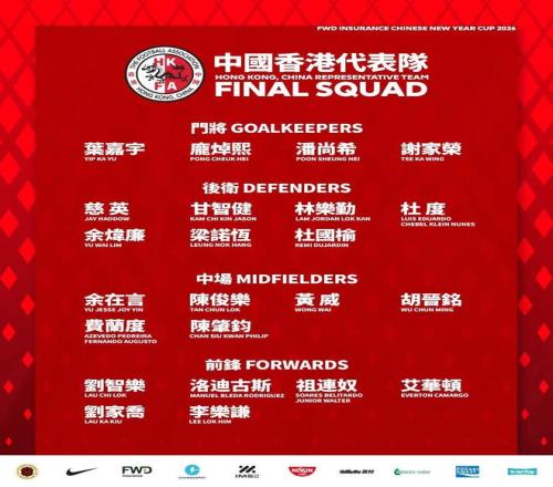 北京时间2月12日,中国香港足总公布了贺岁杯大名单。