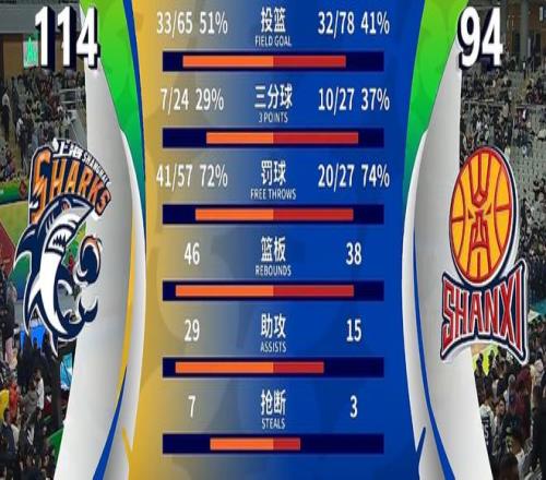 开场后没多久上海男篮就展现出极强的统治力,尤其是替补登场的刘铮,他单节拿到11分,帮助上海男篮在首节就建立起两位数领先优势。【上海男篮 27-15 山西男篮】