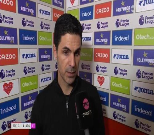 率队在英超第26轮客场1-1战平布伦特福德之后,阿森纳主教练阿尔特塔接受了来自TNT体育的采访。