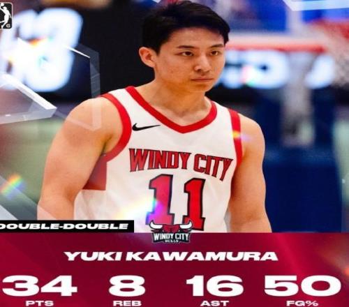 2月12日,NBA发展联盟比赛中,河村勇辉狂砍34分8篮板16助攻,他也是联赛历史唯一取得类似数据的球员。