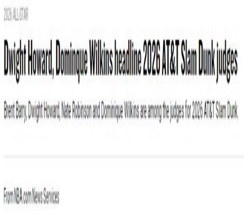 NBA官宣今年NBA全明星扣篮大赛的评委,分别是扣篮大赛2冠王人类电影精华威尔金斯、扣篮大赛3冠王小土豆罗宾逊,以及获得过1次扣篮大赛冠军的魔兽霍华德与布伦特-巴里,外加还将投票选出第5位评委,他们的星光也是完胜今年扣篮大赛的4位球员。