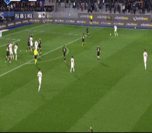 第70分钟,比萨球员横敲中路,被米兰后防档了一下,皮球刚好浇在洛约拉跟前,后者跟进一脚劲射破门,将比分扳成1-1,双方又回到同一起跑线。