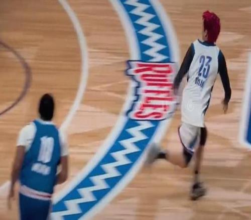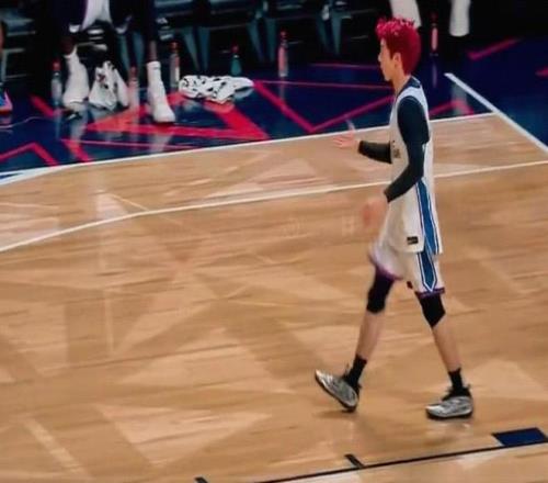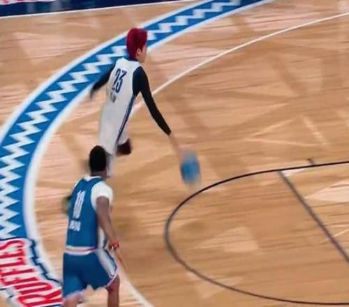 致敬偶像,王鹤棣下快攻接林书豪长传完成上篮,随后霸王步庆祝