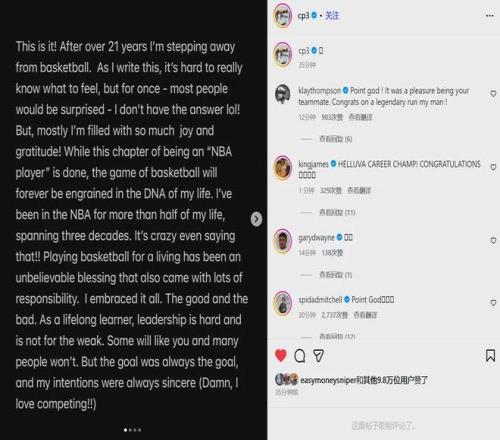 北京时间2月14日凌晨,克里斯-保罗更新个人社交媒体,宣布正式从NBA退役,结束21年的职业生涯。本赛季交易截止日,保罗被快船交易到猛龙,今天凌晨被猛龙裁掉。他没有继续寻找下家,而是头也不回地离开了这个联盟。