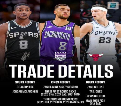 ——公牛得到:扎克科林斯、特雷琼斯、赫尔特、2025年首轮选秀权(从马刺收回)