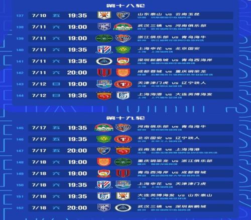根据赛程安排,海港、申花和山东都是1主3客的赛程,其中卫冕冠军上海海港从第16轮起,将连续做客河南和青岛西海岸,第18轮主场对阵大连英博,第19轮客场对阵云南玉昆。上赛季联赛亚军上海申花,将先后对阵大连英博、浙江队、北京国安和天津津门虎,只有对阵浙江是在主场。上赛季的足协杯冠军北京国安将迎来魔鬼赛程,在7月4日和7月11日先主后客对阵山东泰山和上海申花。
