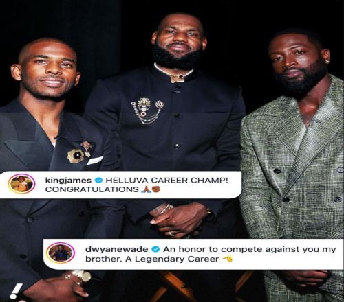詹姆斯在保罗退役后发推:“无比伟大且成功的职业生涯,恭喜克里斯-保罗!”保罗是2005年进入NBA,他在联盟打了21个赛季,四次一阵、五次二阵、七次一防、5次抢断王、6次助攻王、12次全明星。