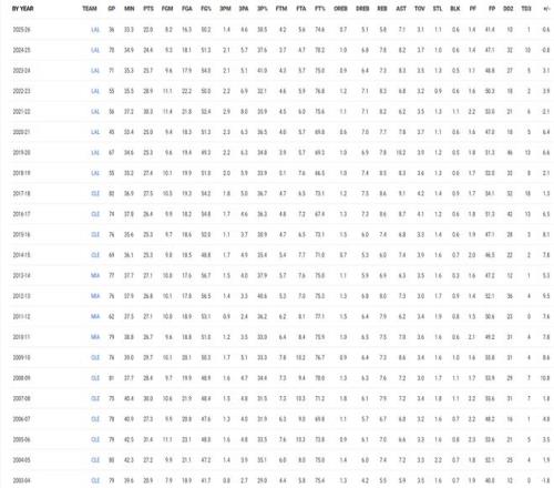 勒布朗詹姆斯本赛季延续了生涯连续23个赛季的场均20+5+5,这也是NBA唯一的神迹,职业生涯场均26.9分7.5篮板7.5助攻1.49抢断0.74盖帽,别说连续23个赛季场均20+5+5,就是连续23个赛季场均20+都只有勒布朗独一份。