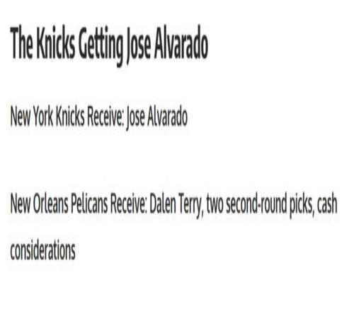 鹈鹕得到:达伦-特里+两枚二轮签+部分现金