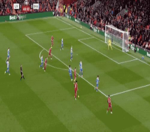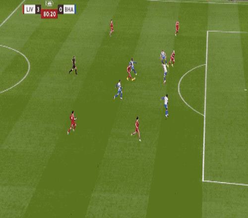 上半场补时阶段,琼斯突然滑倒,戈麦斯打算穿裆破门,阿利松识破计谋。