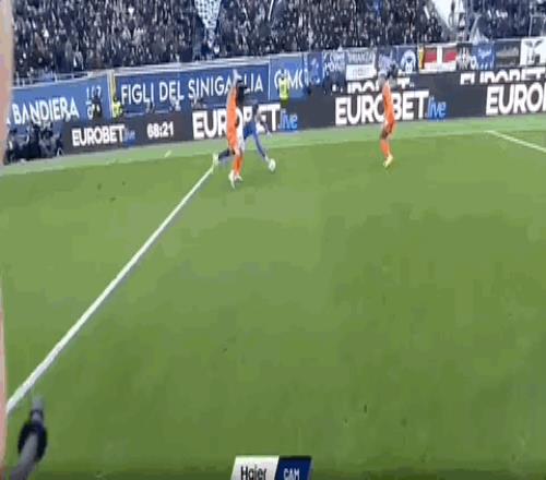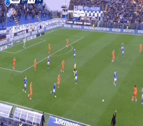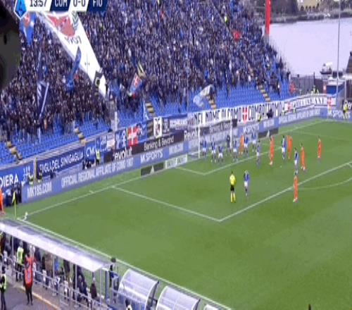 第14分钟,佛罗伦萨角球发出,拉涅利头球顶偏