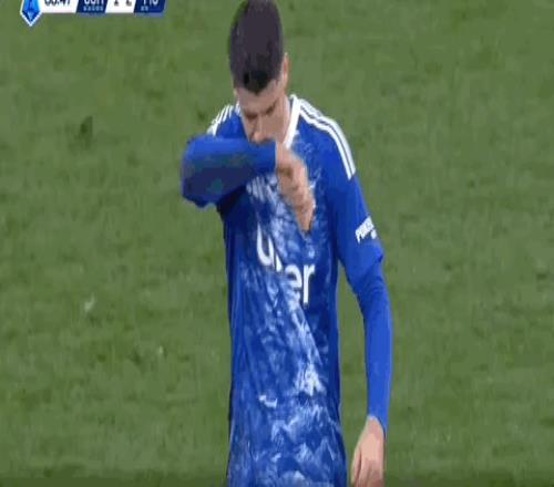 第89分钟,莫拉塔两黄变一红被罚下,在场边又与教练发生口角
