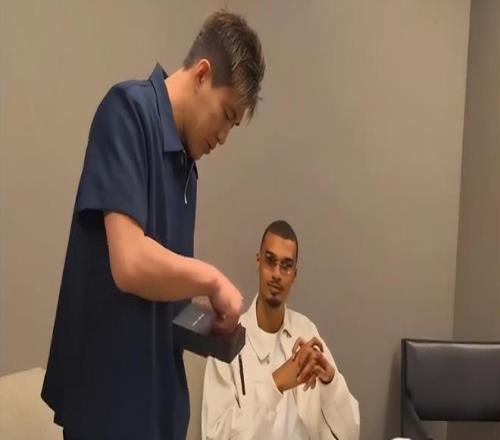 更加充分,他在见到号称是外星人的马刺队当家球星文班亚马,首先是送给了对方一串佛珠。文班亚马一看到那件礼物就两眼放光,迫不及待地戴在自己脖子上。因为他去年夏天来了一趟少林寺收获颇丰,不仅有助于恢复自己的伤病,而且学完少林功夫回到NBA后的球技也明显又进步了一大截。文班亚马也多次公开说,他非常喜欢少林寺,从中学到了不少东西。