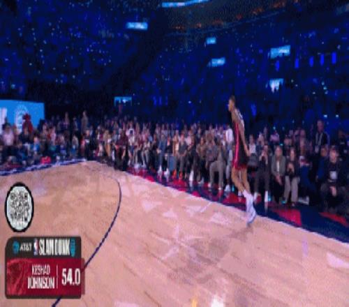 我以为 约翰逊要扣一个惊天动地的,结果他竟然致敬海斯,扣了个拉在地上的,47.8分,47分都是给他的舞蹈的。