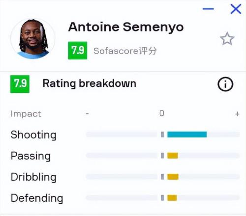 第三是深度退防,拼抢积极。 在防守端,塞梅尼奥的投入度令人印象深刻。他可以一路从对方禁区前沿回追到本方禁区,这种覆盖面积和冲刺跑频率,正是瓜迪奥拉最看重的特质。虽然防守技术并非顶级,甚至偶尔会因犯规送出点球,但这种态度和拼劲,足以赢得教练组的信任。
