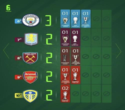 阿森纳2座来自欧洲优胜者杯与国际城市博览会杯;利兹联2座全部来自国际城市博览会杯;纽卡斯尔联的1座也来自国际城市博览会杯。它们在英格兰足坛的体量不小,但在“欧冠”这一项上全是空白,这也是为什么同样是2座或1座,和前排球队放在一起对照时,视觉冲击会更强——总数看着不算少,可最顶级那一块始终缺席。