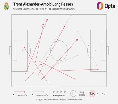 据《马卡报》报道,凭借精准传球和战术智慧,阿诺德正成为皇马进攻体系中不可或缺的进攻组织者。