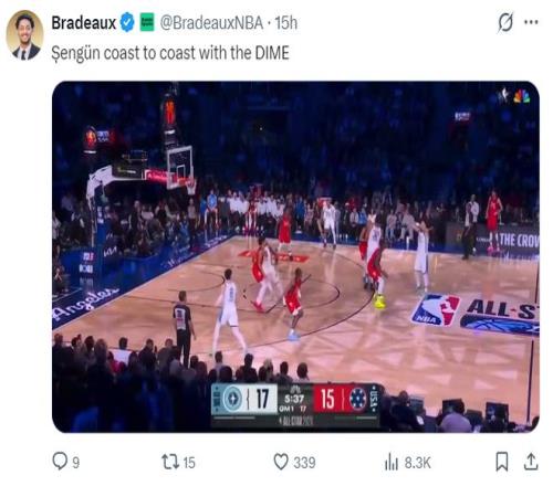 申京在这场比赛中登场9分钟也再度创造了土耳其球员的历史纪录,他这两年的登场时间合计达到32分钟继续刷新土耳其球员全明星登场时间新高。