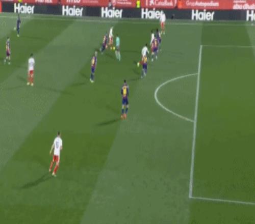 比赛开打后不久,巴萨就反客为主完全控制了场上局面,主队赫罗纳无奈被迫阵型收得很深,只能以防守反击为主。