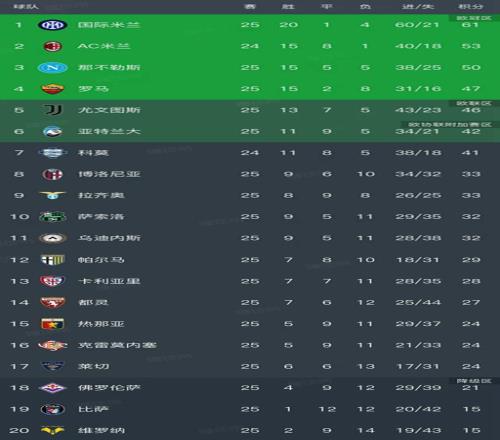 意甲最新积分榜