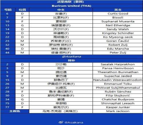 替补:2-沙沙勒、3-班沙、5-汶马探、9-素巴猜、15-那鲁巴丁、26-托库、27-比提瓦、28-鲁文-桑切斯、30-菲利普-斯托伊科维奇、34-察猜、75-辛那帕、77-容克尔