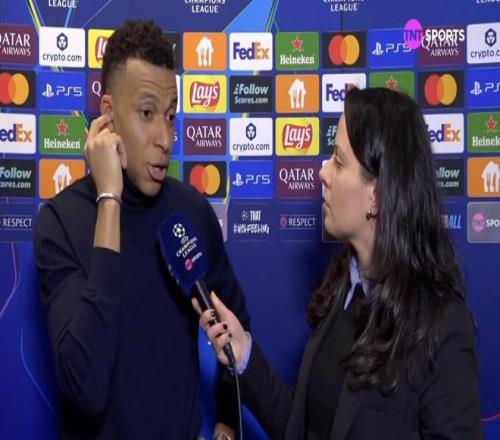 欧冠淘汰赛附加赛首回合,皇马客场1-0战胜本菲卡,皇马前锋姆巴佩赛后接受了TNT体育的采访。