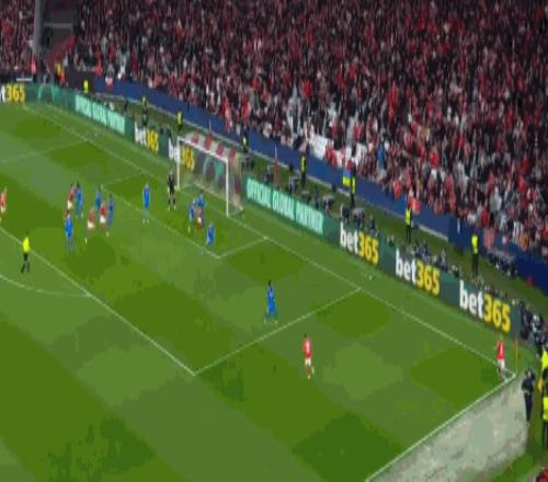 第16分钟,本菲卡连续两次射门,均被库尔图瓦化解