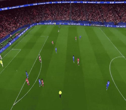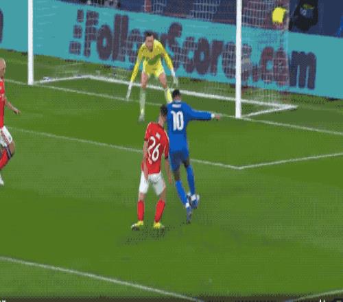 第9分钟,姆巴佩面对三人防守,没有任何预兆,突然起脚射门,造成了切鲁宾的脱手。