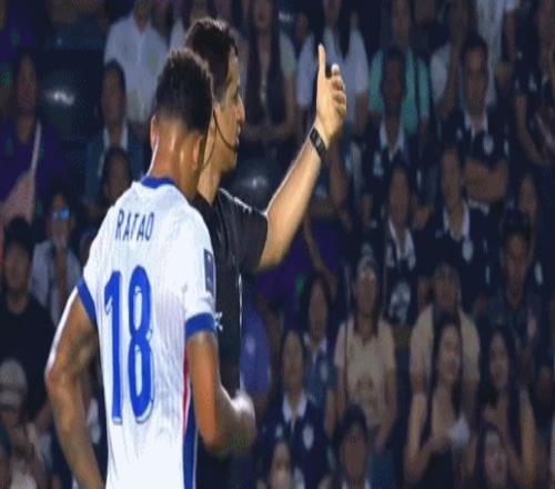 第32分钟,拉唐两分钟内连吃两张黄牌,两黄变一红,被裁判红牌罚下,申花10人作战,无力回天。