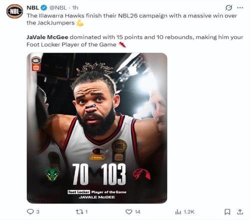 北京时间2月18日,伊拉瓦拉老鹰队以103-70大胜塔斯马尼亚跳伞蚁队。这场比赛老鹰队是一直压制跳伞蚁,前NBA球员贾维尔-麦基拿到15分10篮板的两双数据。