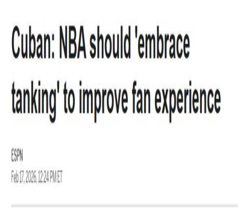 北京时间2月18日,马克-库班公开支持NBA摆烂。这位前独行侠老板表示,NBA应该“拥抱摆烂”,首要原因就是球迷观赛体验。