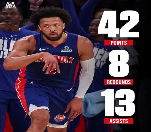 北京时间2月20日,NBA常规赛,底特律活塞126-111大胜纽约尼克斯拿到四连胜。这场比赛活塞一直压制尼克斯,上半场打完已经领先到10分,第三节打完拉开到11分,末节活塞继续扩大领先优势。坎宁安此役拿到42+13+8的准三双数据完压布伦森。