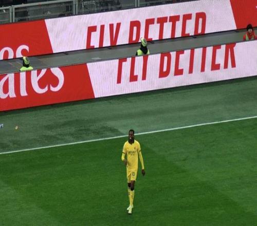 比赛是在当地时间周三晚间举行,有少许空座。下半场开始的时候,大屏幕上打出了75251这一数字,不知道是不是当天到场的球迷人数。死忠球迷区是在南看台二层的一大片看台,全是黑衣人。他们全场一直在呐喊助威、鼓掌喝彩,不时还燃起红色的烟火,蔚为壮观。