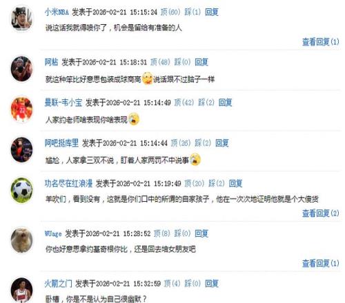 杨瀚森进一步表示:“这也是比赛的一部分,约基奇今天也有两罚不中的情况,我一直在盯着呢,哈哈!”只是杨瀚森的如此回应却引发一众网友的不满,认为他是在抖机灵。