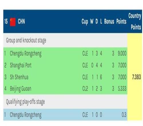 从(上图)可以看到,中超Big3参加的亚冠精英赛和北京国安踢的亚冠二联赛中,四队加起来仅拿到7.3831个技术分。其中首次参加亚冠的成都蓉城拿到Big4中的最高分,上海申花和上海海港都其次,最低是北京国安。