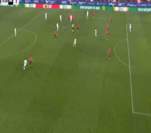第89分钟,皇马后场失误送大礼,塞瓦略斯回传时直接将球“传到”加西亚脚下,加西亚轻松断球后传给莫罗,后者接球往前推进到禁区弧顶前再精妙直塞,加西亚及时跟进,禁区内接球冷静晃开回防球员,超近距离大力兜射,皮球应声入网,奥萨苏纳2:1绝杀皇马。客场爆冷输球后,皇马西甲8连胜被终止。