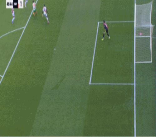 第35分钟,安东尼禁区内过掉对手尝试射门,皮球打偏