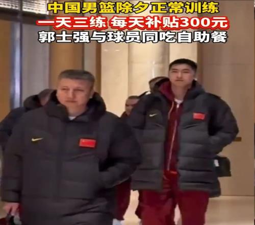 因为集训时间刚好包含春节假期,这也意味着参与国家队集训的球员们不能回家过年,只能在球队度过春节。此前有媒体报道,中国男篮甚至除夕还在训练,坚持一天三练,每天只补贴300元,作为主教练的郭士强也跟球员同吃自助餐。